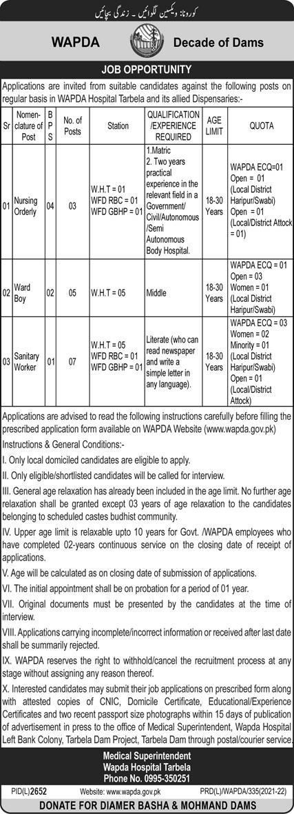 Wapda Hospital is looking for candidates for following posts as per job advertisement published in daily Express Newspaper of March 4, 2022 for location Tarbela, tarbela Khyber Pakhtunkhwa KPK Pakistan: