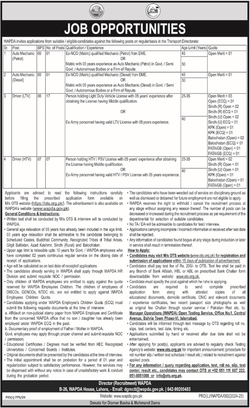 Water and Power Development Authority WAPDA latest Government Labor jobs and others can be applied till 5 October 2024 or as per closing date in newspaper ad. Read complete ad online via OTS to know how to apply on latest Water and Power Development Authority WAPDA job opportunities.