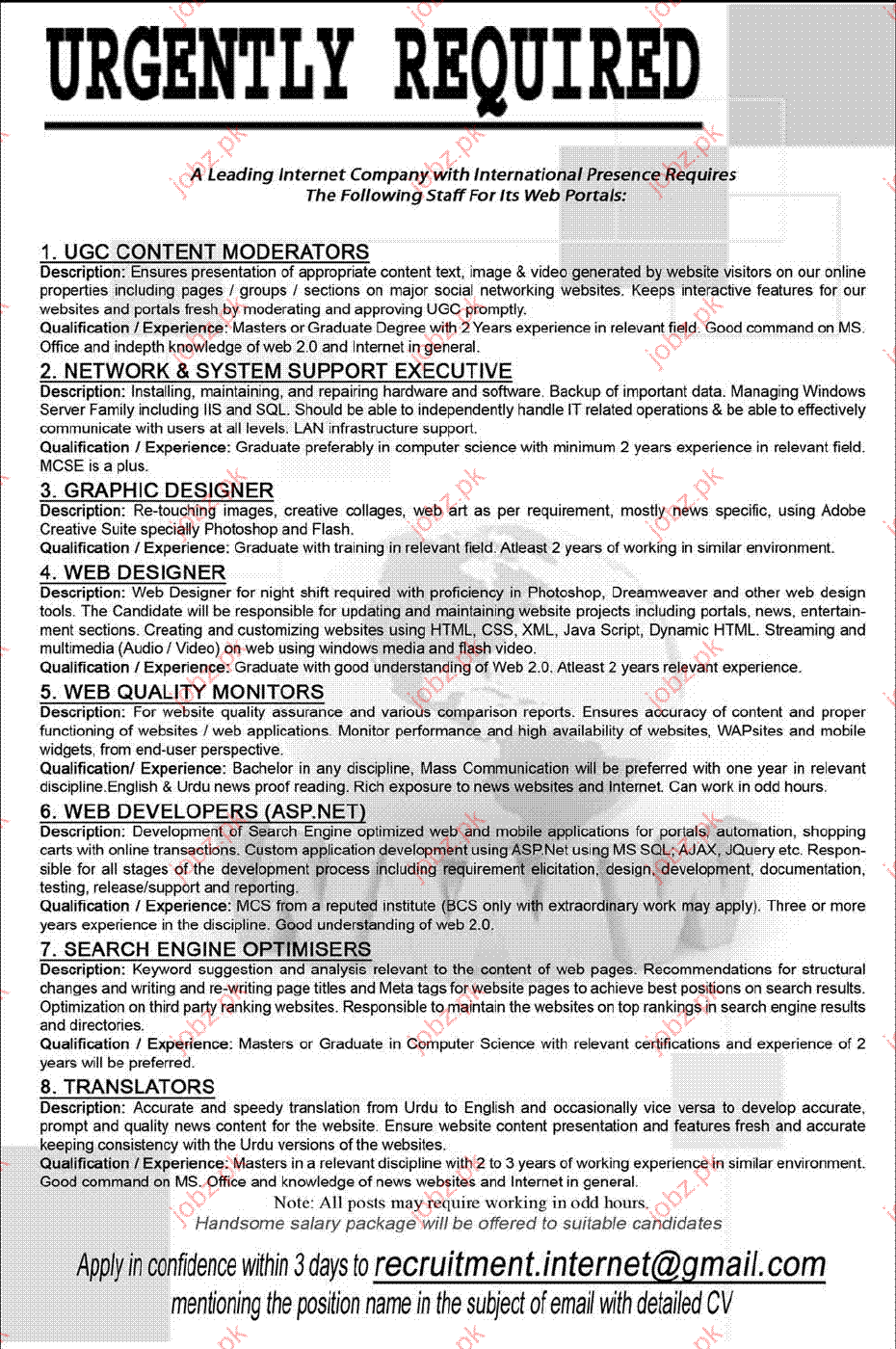 Apply as per details in job advertisement. Login to view further details of how to apply via https://www.jobz.pk online.
