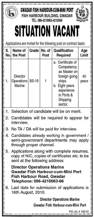 Job Opportunities In Gawadar Fish Harbour Mini Port