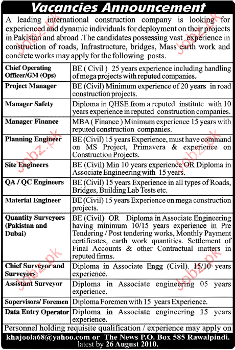 Apply as per details in job advertisement. Login to view further details of how to apply via https://www.jobz.pk online.