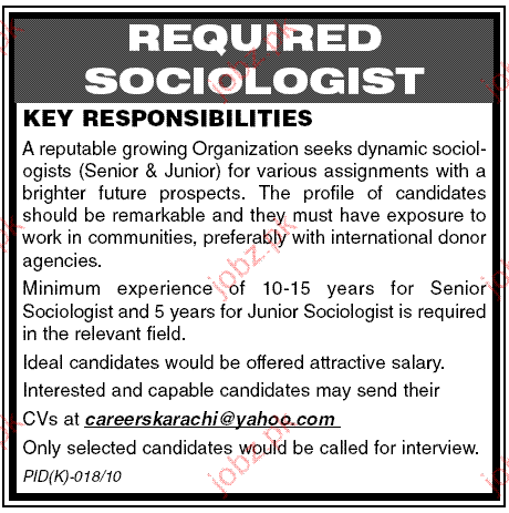 Apply as per details in job advertisement. Login to view further details of how to apply via https://www.jobz.pk online.