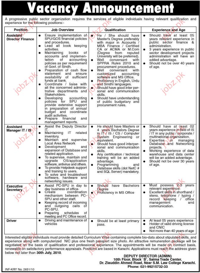 Apply as per details in job advertisement. Login to view further details of how to apply via https://www.jobz.pk online.