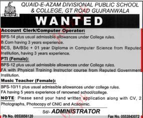 Job Opportunities in Quaid-E-Azam Divisional Public School