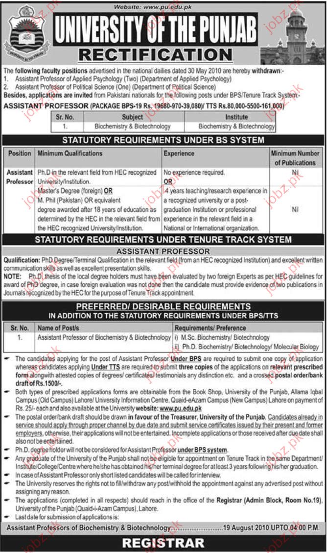 Apply as per details in job advertisement. Login to view further details of how to apply via https://www.jobz.pk online.