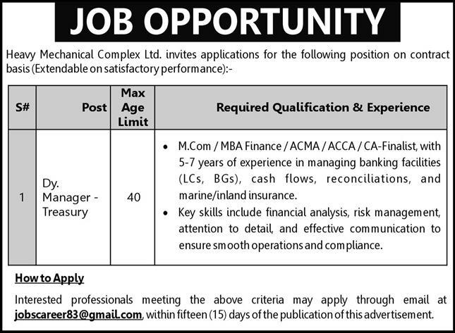 Heavy Mechanical Complex HMC invites applications for job positions advertised in daily Express dated 22 June 2025 for following vacancies in Wah Cantt, wah cantt Punjab Pakistan.