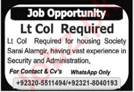 Housing Society jobs advertisement dated about 25 August 2024 in daily Jang Newspaper invites application for the vacant post of lt colonel in Sarai Alamgir, sarai alamgir Punjab Pakistan. Persons with Bachelor and Master etc. education can apply.