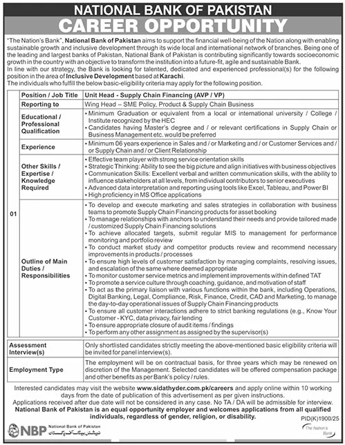 Vacancies in National Bank of Pakistan NBP Advertisement November 2025
