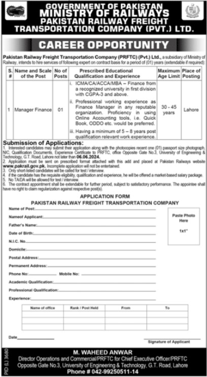 Job Opportunity At Pakistan Railways Freight Transportation