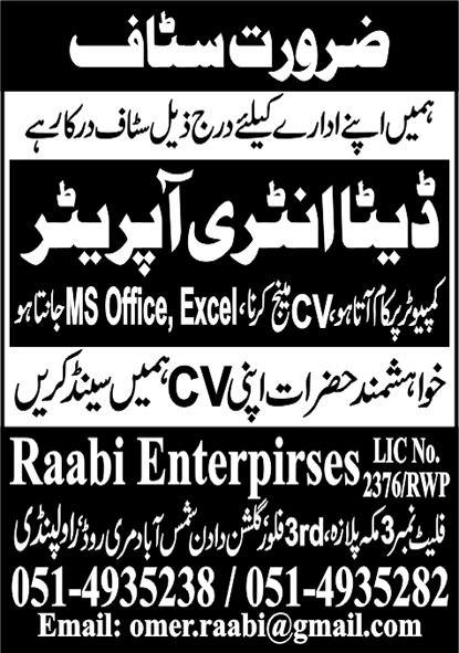 Latest Raabi Enterprises Data Entry Posts Rawalpindi 2025