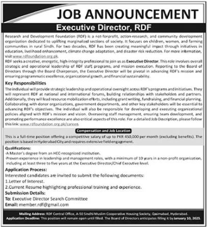 Latest Management jobs and others Private jobs in Research & Development Foundation RDF closing date is around January 30, 2025, see exact from ad. Read complete ad online to know how to apply on latest Research & Development Foundation RDF job opportunities.