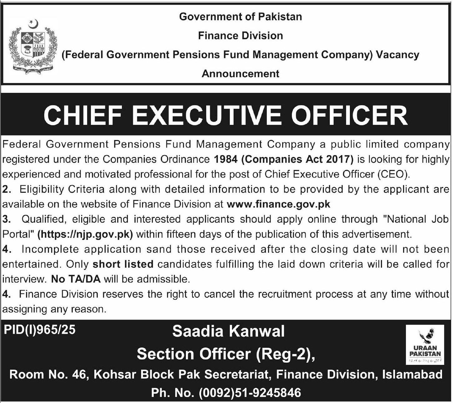 Finance Division is looking for candidates for following posts as per job advertisement published in daily Express Tribune Newspaper of August 3, 2025 for location Islamabad, islamabad Islamabad Pakistan: