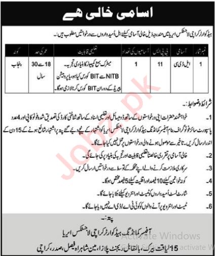 Latest Headquarter Logistics Area Admin Clerical Posts Karachi 2025