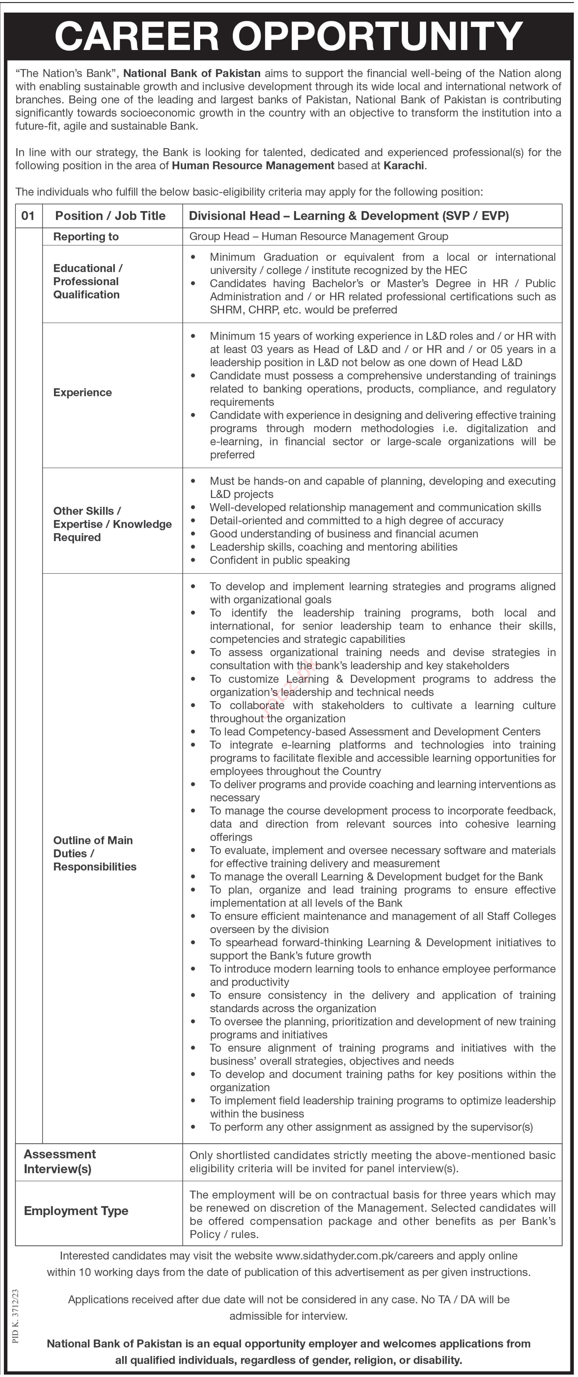 Vacancies in National Bank of Pakistan NBP Advertisement June 2024
