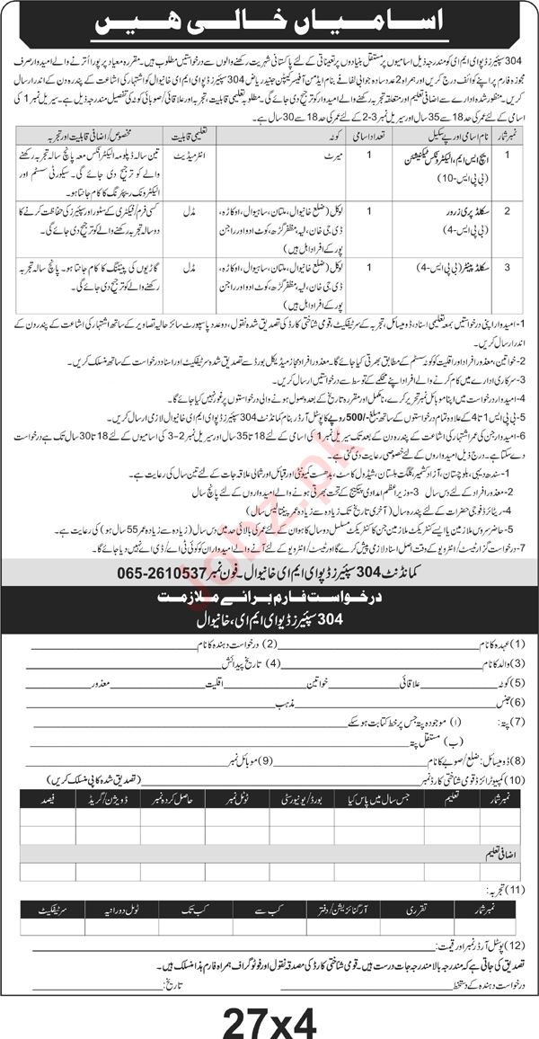 Vacancies in 304 Spares Depot EME Advertisement May 2024