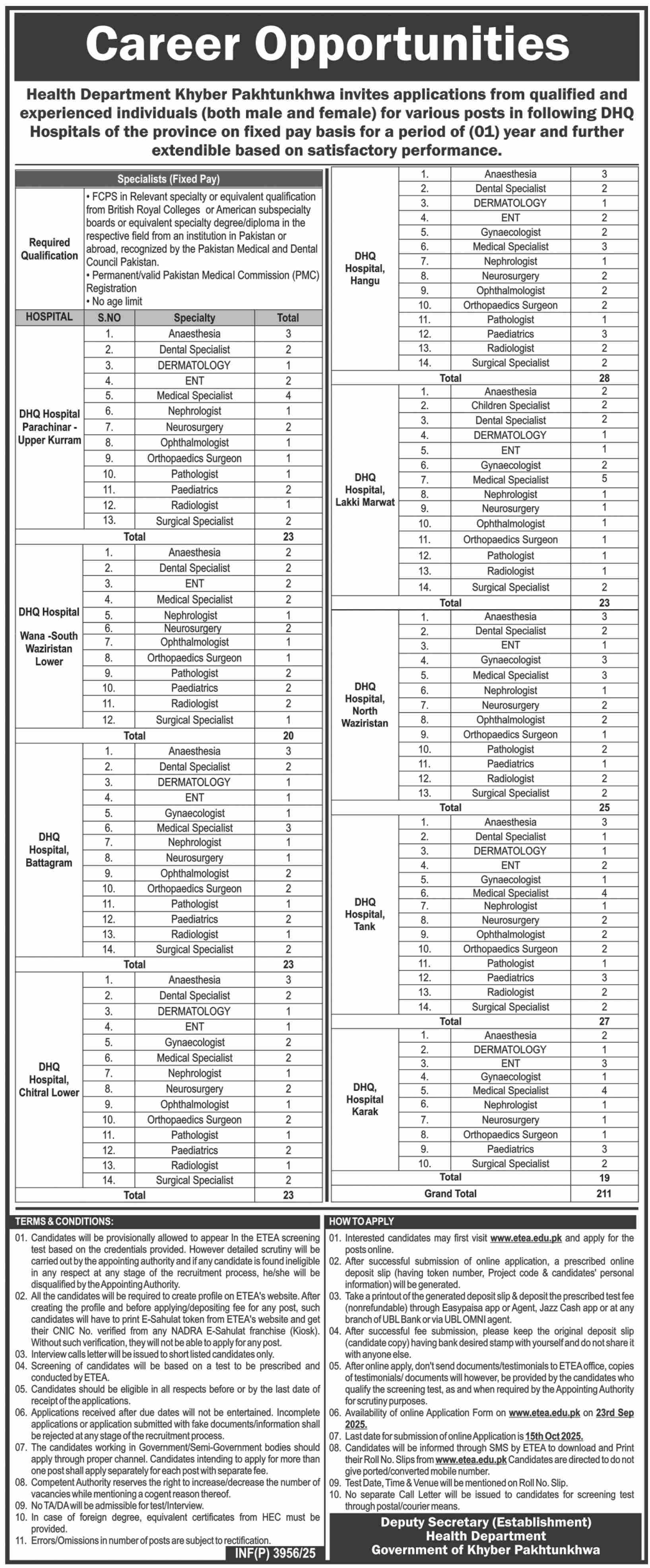 Apply at Health Department latest Government jobs in Medical and departments before closing date which is around October 15, 2025 or as per closing date in newspaper ad. Read complete ad online to know how to apply on latest Health Department job opportunities.