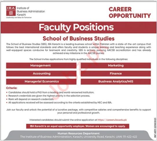 Vacancies in Institute of Business Administration IBA Advertisement June 2023