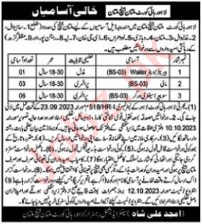 Lahore High Court LHC invites applications for job positions advertised in daily Nawaiwaqt dated 1 October 2023 for following vacancies in Multan, multan Punjab Pakistan.