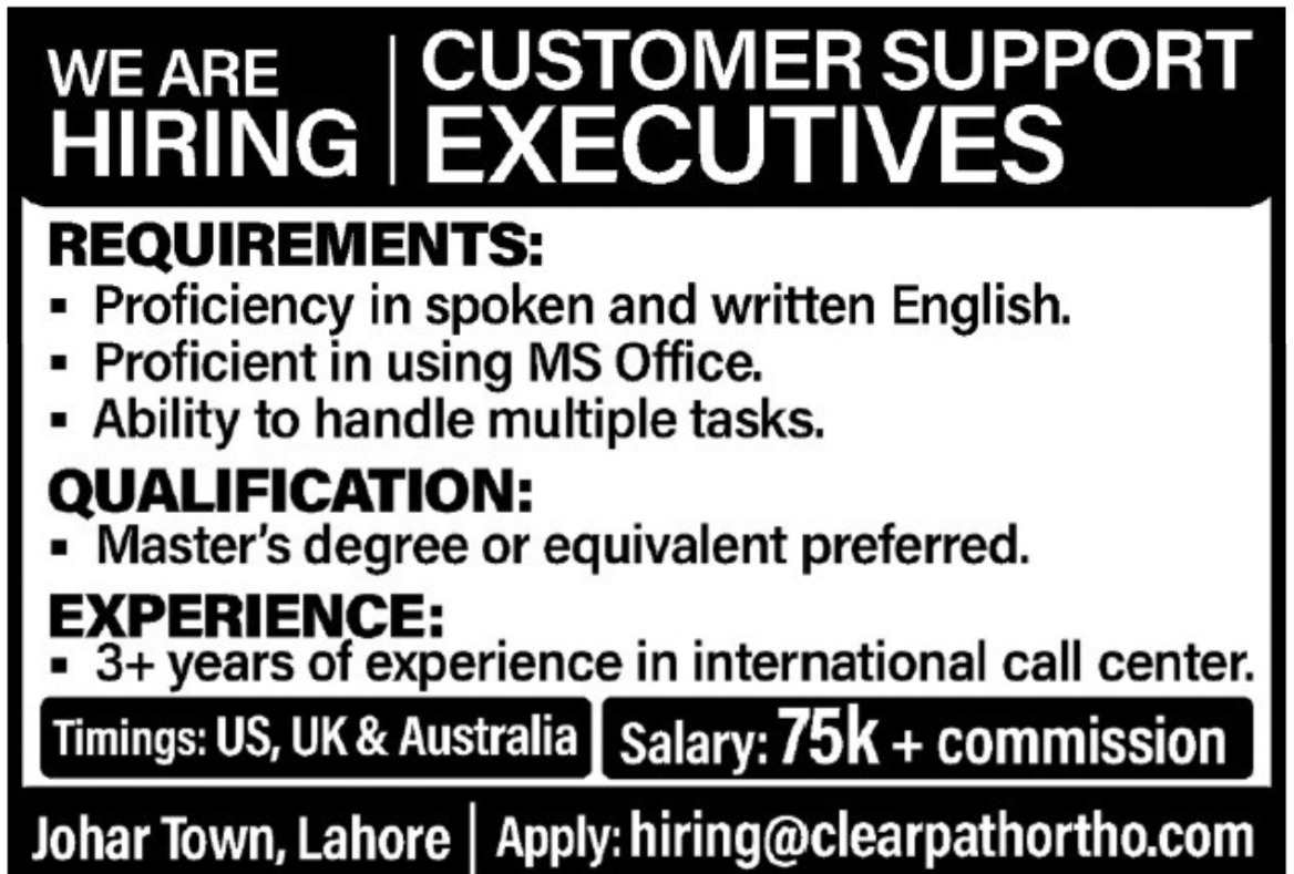 Private Company invites applications for job positions advertised in daily Express Tribune dated 16 January 2024 for following vacancies in Lahore, lahore Punjab Pakistan.