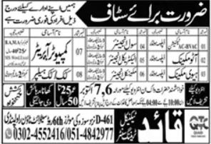 Quaid Technical Training Center is looking for candidates for following posts as per job advertisement published in daily Dunya Newspaper of October 4, 2025 for location Satellite Town Rawalpindi, rawalpindi Punjab Pakistan: