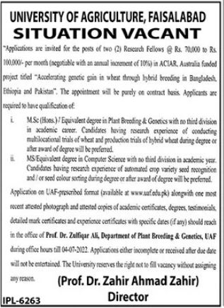 Vacancies in University of Agriculture UAF Advertisement June 2022