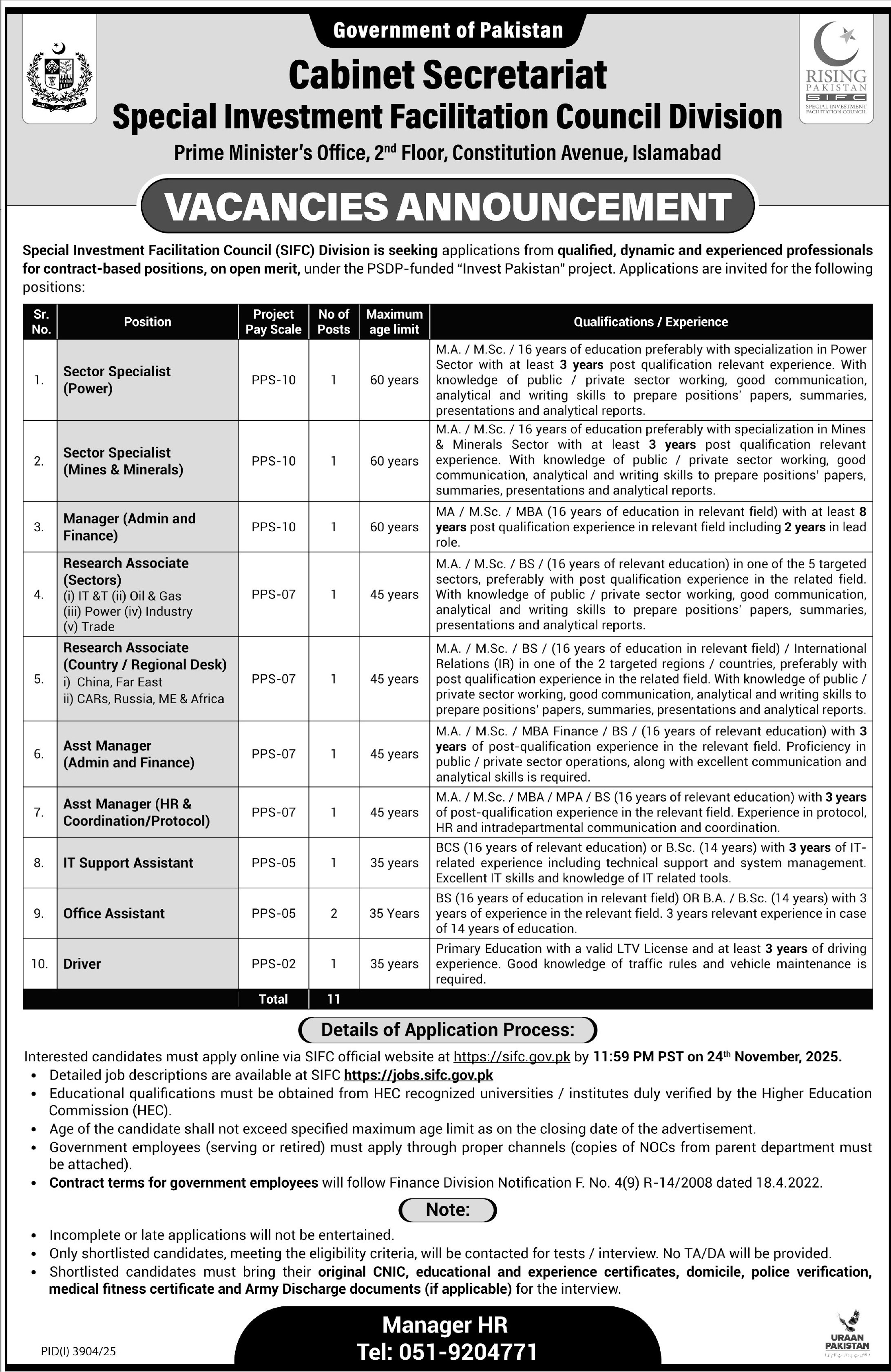 Cabinet Secretariat jobs advertisement dated about 9 November 2025 in daily Express Tribune Newspaper invites application for the vacant post of driver, sector specialist, assistant manager admin finance, research associate, assistant manager hr coordination, manager admin finance, it support assistant, office assistant and assistant manager protocol in Islamabad, islamabad Islamabad Pakistan. Preferred Education is M.sc, MA, BCS and Primary etc.