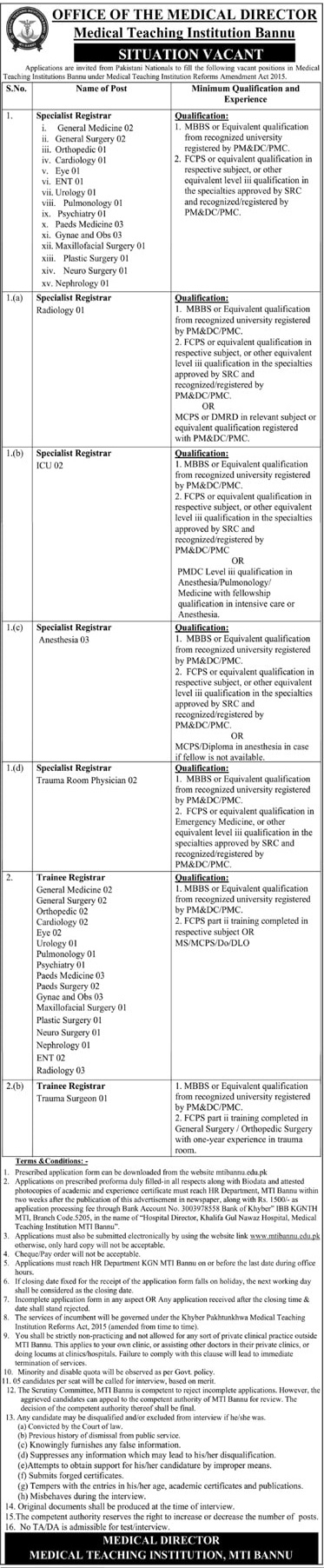 Job Vacancies At Medical Teaching Institution MTI Bannu