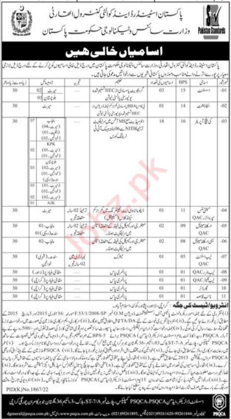 Vacancies in Pakistan Standard and Quality Control Authority Advertisement January 2023