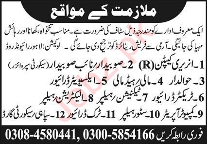 Vacant posts including helper, truck driver, head mali, store helper, havaldar, mali, electrician, honorary captain, technician, computer operator, excavator driver, sepoy, tractor driver, naib subedar, subedar and security guard are announced in Private Organization Lahore, lahore Punjab Pakistan as per 6 October 2024 advertisement in daily Express Newspaper. Matric, Intermediate, Middle and Bachelor etc. educational qualification will be preferred.