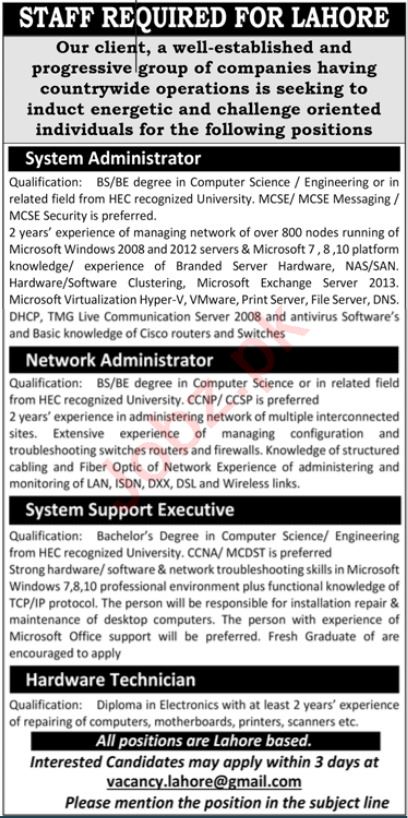 Bachelor, BCS, DAE and B.E etc. educational qualification will be preferred.