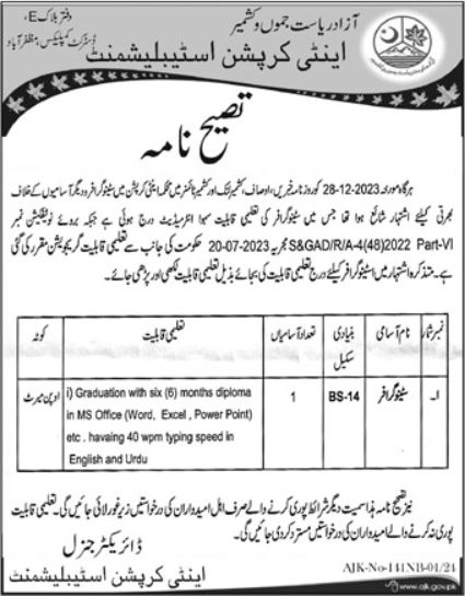 Anti Corruption Establishment ACE invites applications for job positions advertised in daily Khabrain dated 12 January 2024 for following vacancies in Muzaffarabad, muzaffarabad AJK Pakistan.
