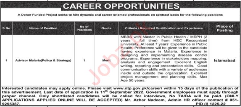 Donor Funded Project invites applications for job positions advertised in daily Jang dated 28 August 2022 for following vacancies in Islamabad, islamabad Islamabad Pakistan.
