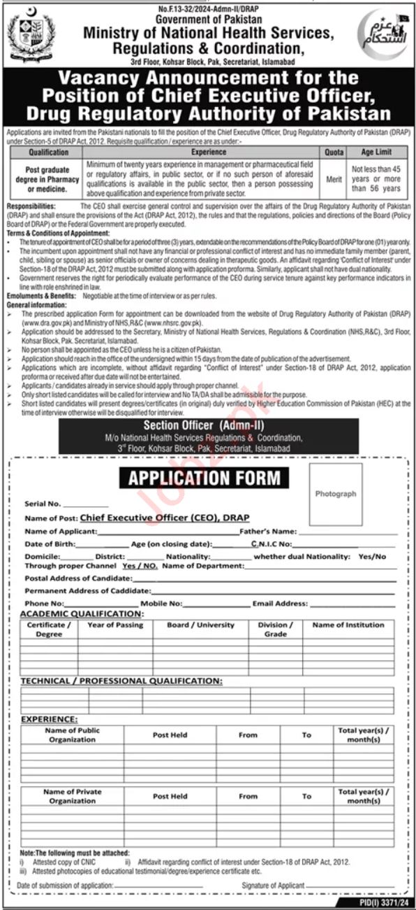 Job Vacancy At Drug Regulatory Authority Of Pakistan
