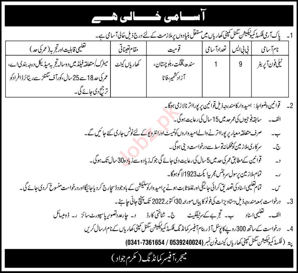 Fixed Communication Signal Company invites applications for job positions advertised in daily Express dated 10 October 2022 for following vacancies in Kharian, kharian Punjab Pakistan.
