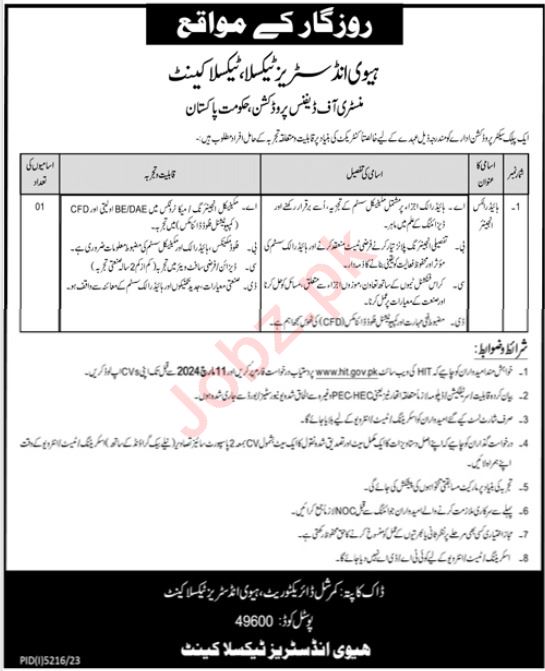 Heavy Industries Taxila is looking for candidates for following posts as per job advertisement published in daily Jang Newspaper of March 3, 2024 for location Taxila, taxila Punjab Pakistan: