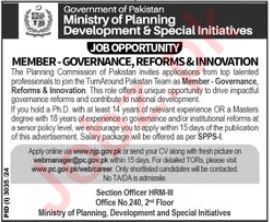 Ministry of Planning Development and Special Initiative Islamabad, islamabad Islamabad Pakistan invites applications from eligible candidates for the post of member as per advertisement of November 3, 2024 published in daily Jang Newspaper. Educational qualifications required Master and Bachelor etc.