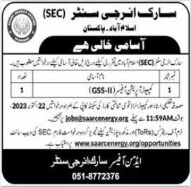 SAARC Energy Centre Islamabad, islamabad Islamabad Pakistan invites applications from eligible candidates for the post of computer operation officer as per advertisement of October 8, 2023 published in daily Jang Newspaper. Candidates with Bachelor and Master etc. educational background will be preferred.