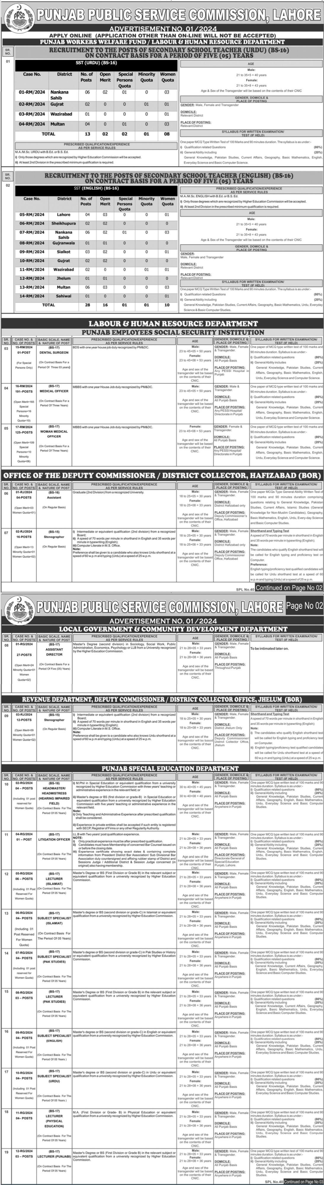 Punjab Public Service Commission PPSC is looking for candidates for following posts as per job advertisement published in daily Jang Newspaper of January 11, 2024 for location Lahore, gujrat, jhelum, multan, sahiwal, wazirabad, sheikhupura, gujranwala, lahore, nankana sahib and sialkot Punjab Pakistan:
