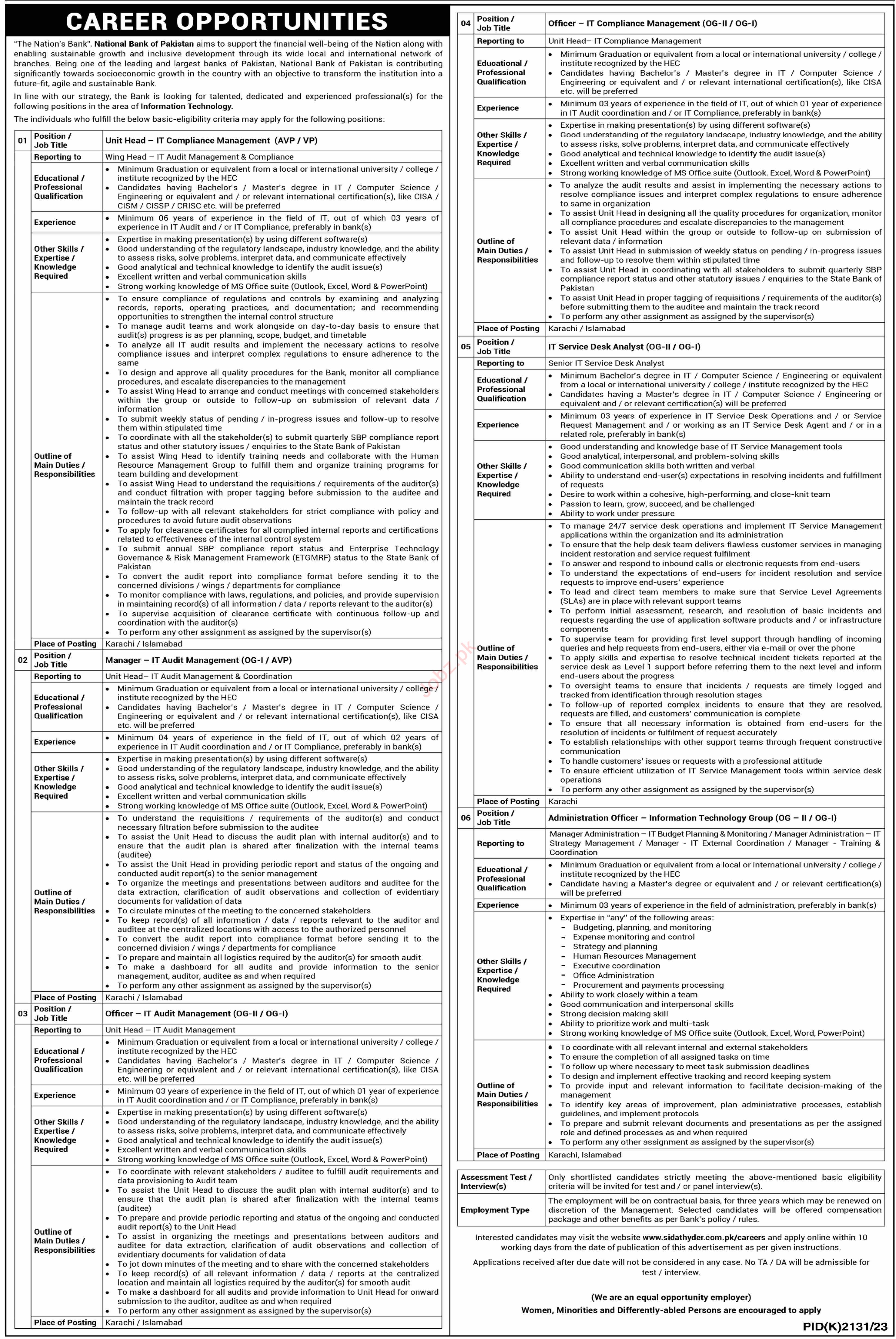 Vacancies in National Bank of Pakistan NBP Advertisement January 2024