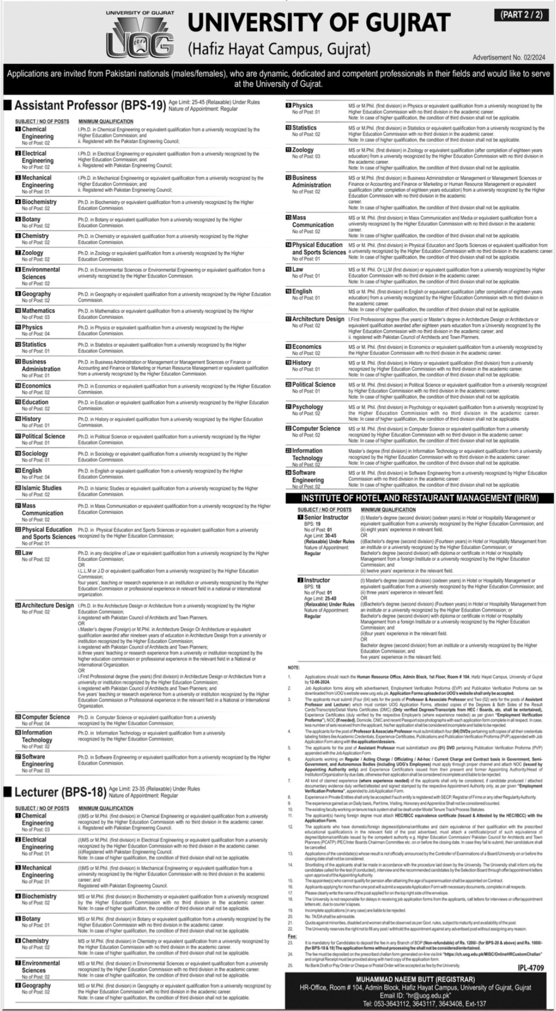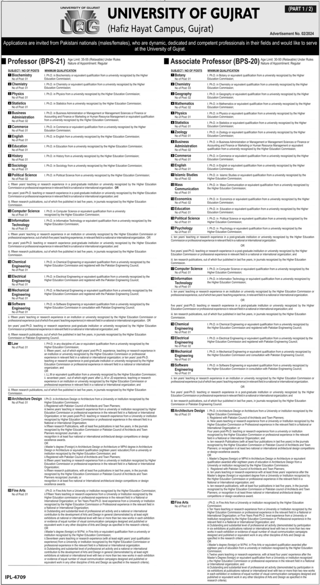 University of Gujrat UOG Gujrat, gujrat Punjab Pakistan invites applications from eligible candidates for the post of professor chemical engineering, associate professor, professor information technology, associate professor islamic studies, professor physics, associate professor education, lecturer mechanical engineering, instructor, associate professor statistics, lecturer chemical engineering, assistant professor environmental sciences, lecturer statistics, professor biochemistry, lecturer biochemistry, lecturer, professor business administration, assistant professor biochemistry, associate professor english, lecturer geography, professor commerce, assistant professor electrical engineering, professor architecture design, associate professor chemistry, associate professor business administration, lecturer electrical engineering, professor mechanical engineering, assistant professor mechanical engineering, professor electrical engineering, assistant professor botany, lecturer chemistry, assistant professor mathematics, professor, professor sociology, professor political science, associate professor mathematics, assistant professor chemical engineering, professor chemistry, professor statistics, associate professor commerce, lecturer physics, professor software engineering, associate professor mass communication, lecturer botany, assistant professor chemistry, lecturer environmental sciences, professor computer science, professor law, associate professor physics, associate professor economics, assistant professor, associate professor zoology, professor english, professor education, professor history, assistant professor zoology, assistant professor geography, assistant professor physics, associate professor botany, associate professor geography and professor fine arts as per advertisement of May 24, 2024 published in daily Jang Newspaper. Candidates with Master, MS, LLM, Bachelor, Phd and Mphil etc. educational background will be preferred.