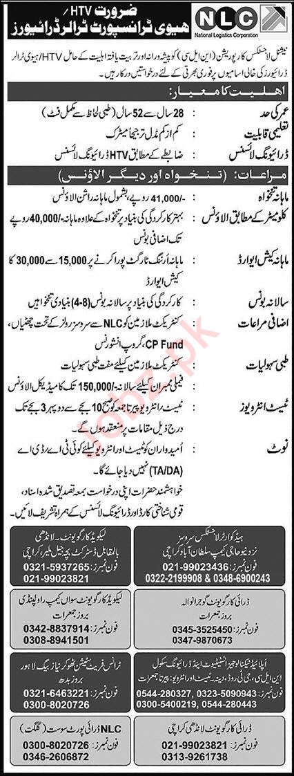 National Logistics Corporation NLC jobs advertisement dated about 26 November 2023 in daily Express Newspaper invites application for the vacant post of heavy transport trala driver in Rawalpindi, rawalpindi Punjab Pakistan. Persons with Middle and Matric etc. education can apply.