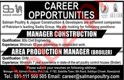 Jobs At Salman Poultry & Jaguar Construction & Developers