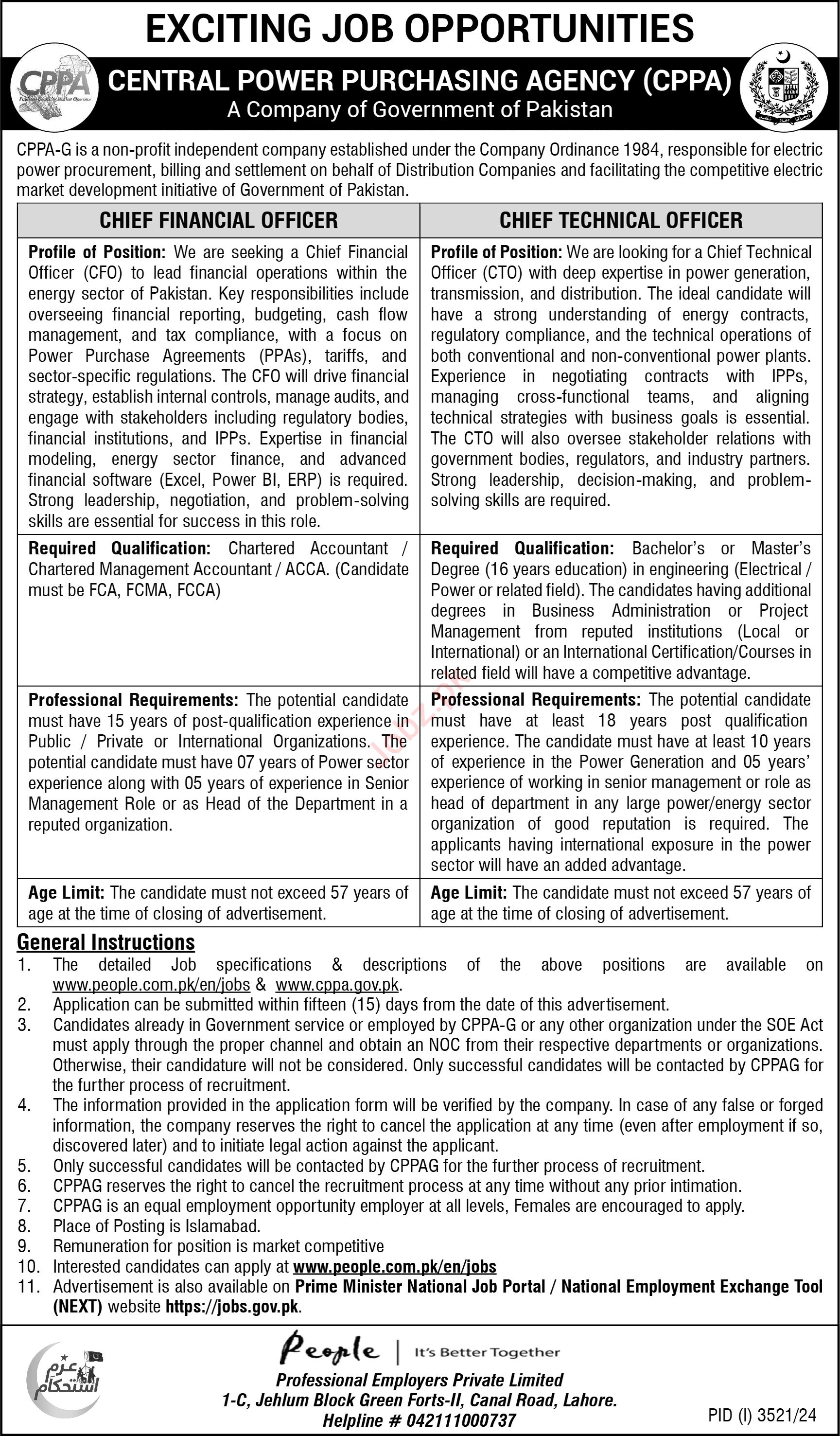 Vacancies in Central Power Purchasing Agency CPPA Advertisement November 2024