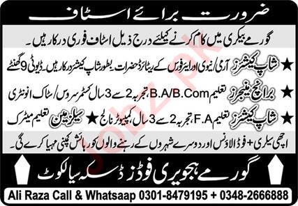 Gourmet Bakers Daska, sialkot and daska Punjab Pakistan invites applications from eligible candidates for the post of shop cashier, salesman and branch manager as per advertisement of January 19, 2025 published in daily Express Newspaper. B.com, Bachelor, Matric and BA etc. educational qualification will be preferred.