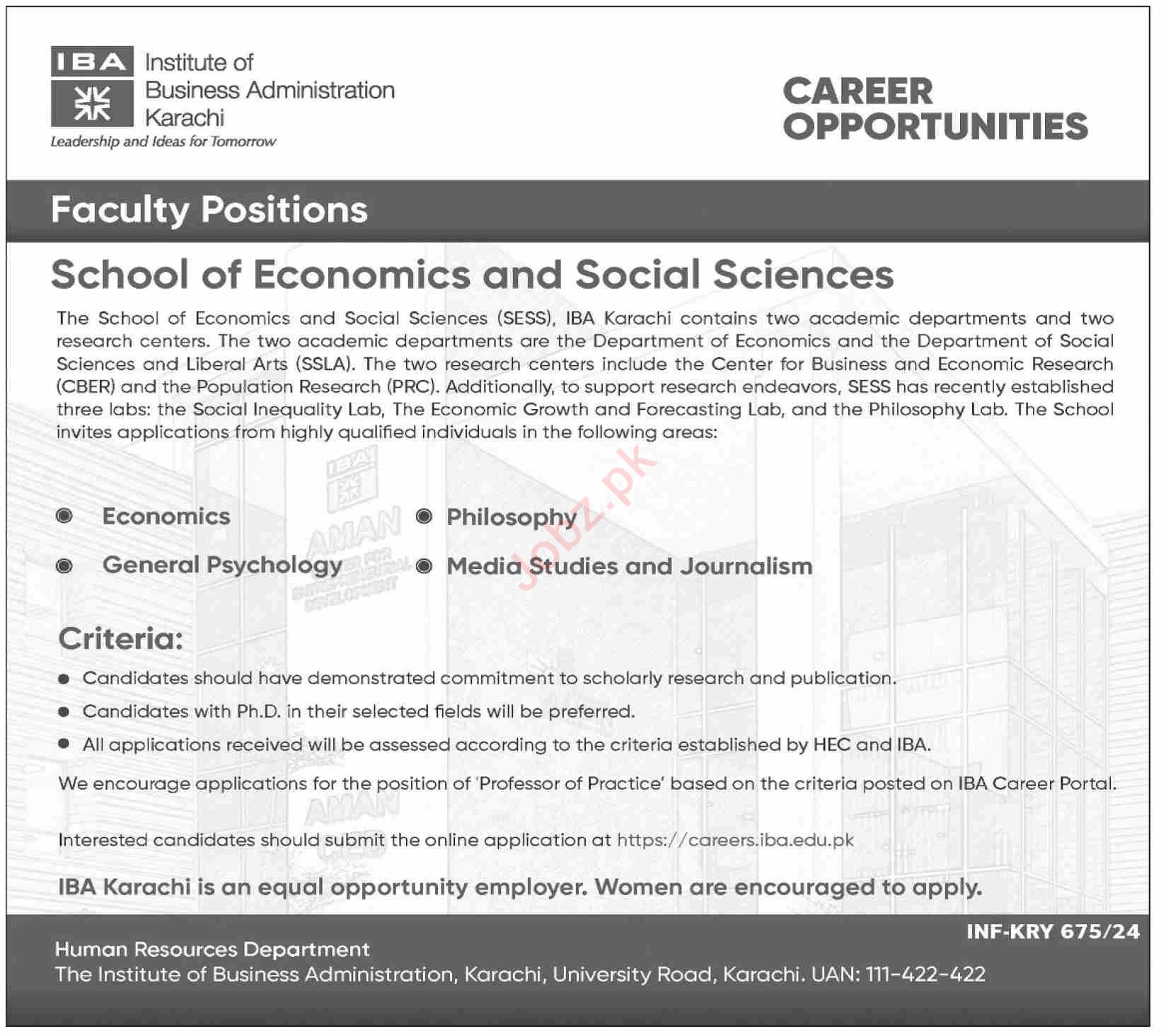 Latest Institute of Business Administration IBA Education Posts Karachi 2025