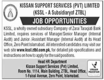 Kissan Support Services Pvt Limited KSSL is looking for candidates for following posts as per job advertisement published in daily The News Newspaper of February 3, 2025 for location Islamabad, islamabad Islamabad Pakistan: