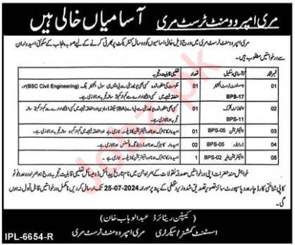 Vacancies in Murree Improvement Trust Advertisement July 2024