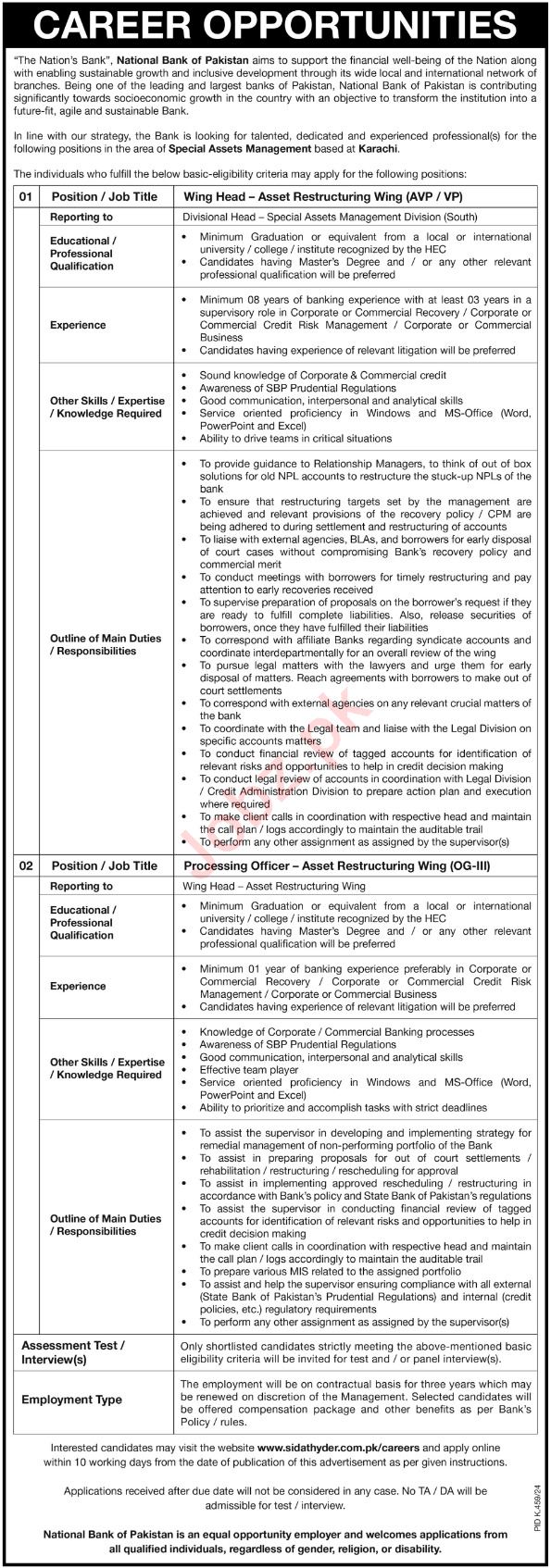Vacancies in National Bank of Pakistan NBP Advertisement August 2024