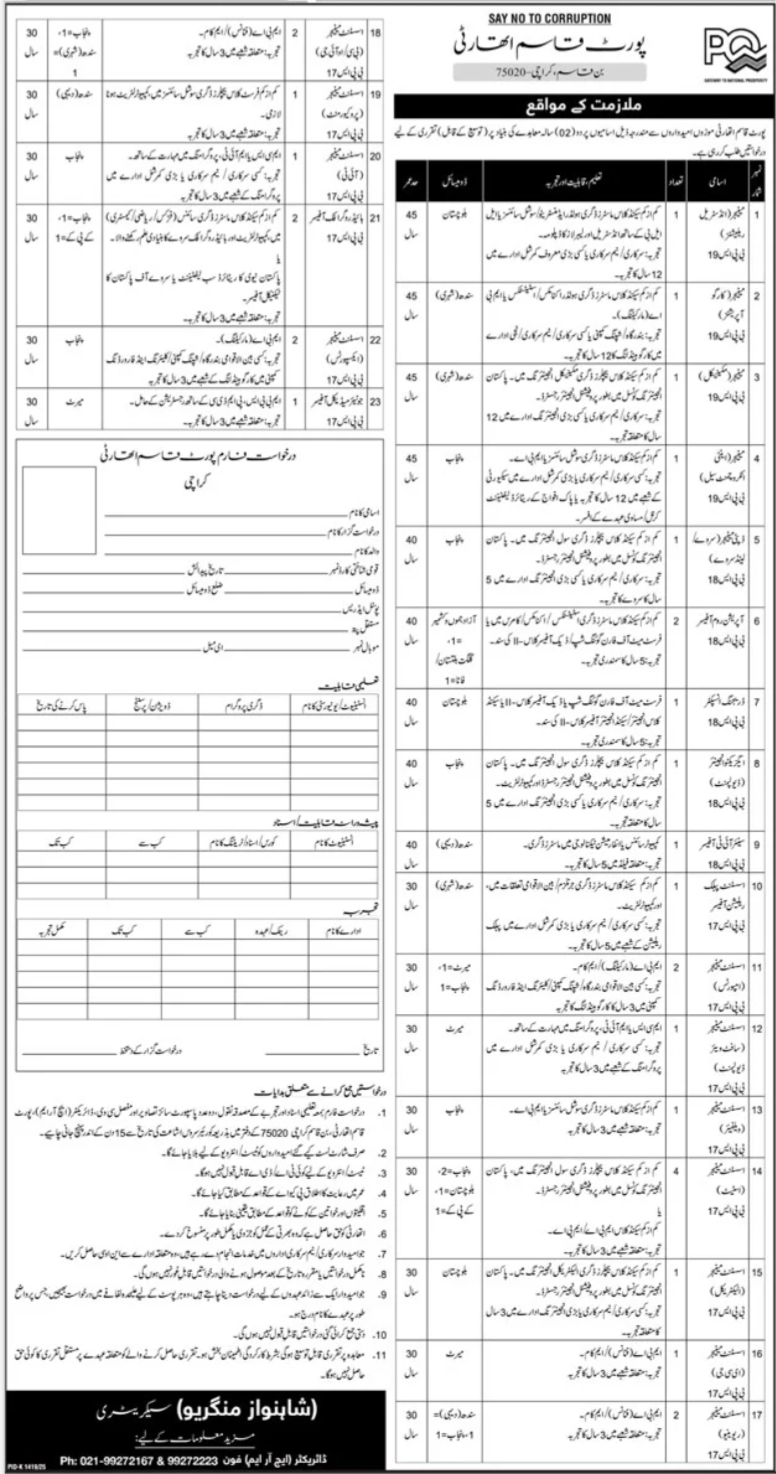 Port Qasim Authority PQA invites applications for job positions advertised in daily Jang dated 28 October 2025 for following vacancies in Karachi, karachi Sindh Pakistan.