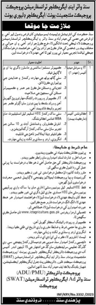 Project Management Unit PMU Karachi, karachi Sindh Pakistan invites applications from eligible candidates for the post of it social media officer and accounts officer as per advertisement of August 1, 2023 published in daily Kawish Newspaper. MBA, Master, MCS and MS etc. educational qualification will be preferred.